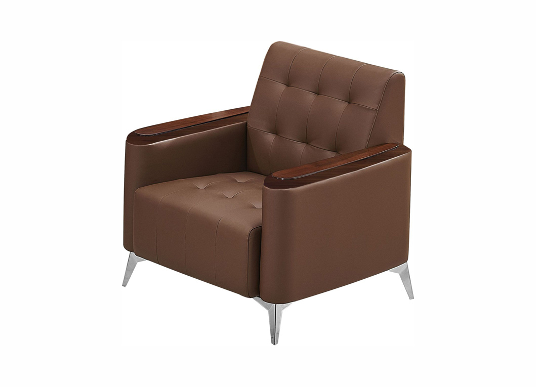 ARTISTIC 1 Seater Sofa featuring in a brown PU-leather material upholstered tightly for a premium finish. Armrests topped with a polished wood for a classic style of durability while the seat and backrest well cushioned with high density molded foam. Just like its name sounds, ARTISTIC sofas thoughtfully integrate polished stainless steel at the base for a durable and stable comfort office seating solution.