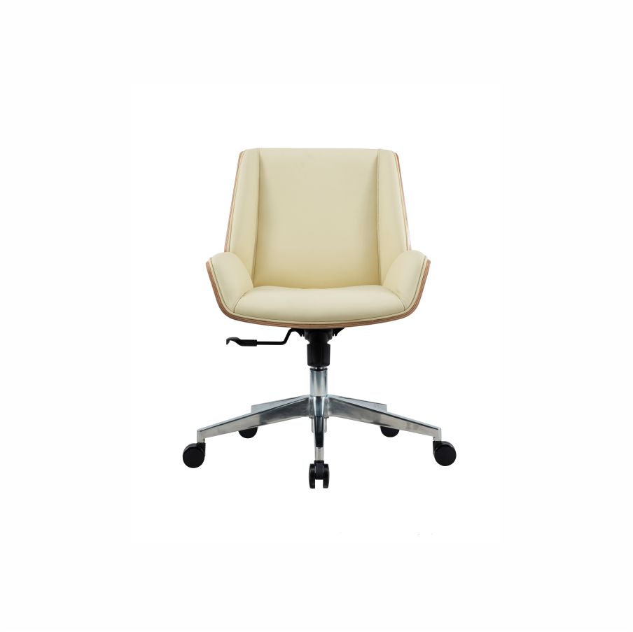 BENTO CREAM Low-Back Leather Chair is a modern executive office seater with an exterior veneered texture finishing. The interior of the backrest and the seat are upholstered with a high quality PU leather. All internally padded with molded foam for exclusive comfort. This keeps its in shape after a long period of seating while maintaining the premium aesthetic look. Stylishly, it features blind tufting designs by the edges to showcase a classic blend. It comes with an up and down adjustable seat supported with a class 3 Korean glass-lift. At the base, it rotates 3600 using a 5 star chrome swivel base supported with floor safe PU casters.