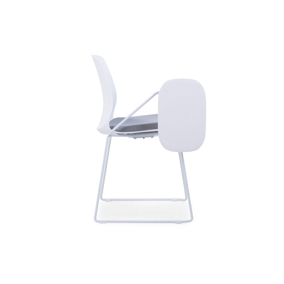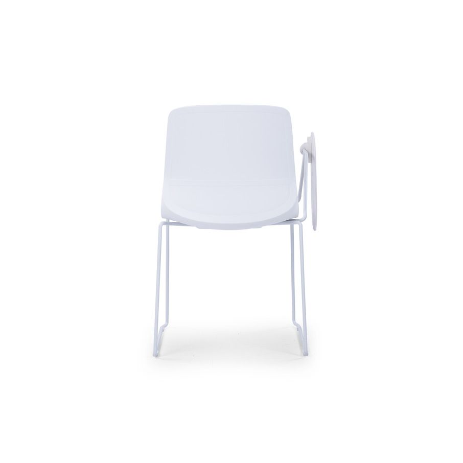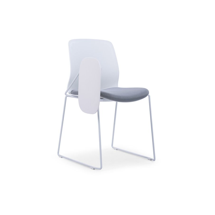 CRYSTAL White Frame Training Chair made of a white frame and white coated steel frame together with a PA nylon writing pad. This is the most versatile conference room and classroom furniture solution offering a writing platform on the side. Its lightweight, durable and very easy to clean. CRYSTAL comes with a soft seat cushioned yet upholstered with a tough grey fabric. At a moderately elevated height, it stands on legs rods which also have rubber floor supports. Check out Desk Craft wide collection of stools and training chairs for modern conference rooms.