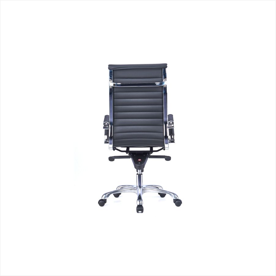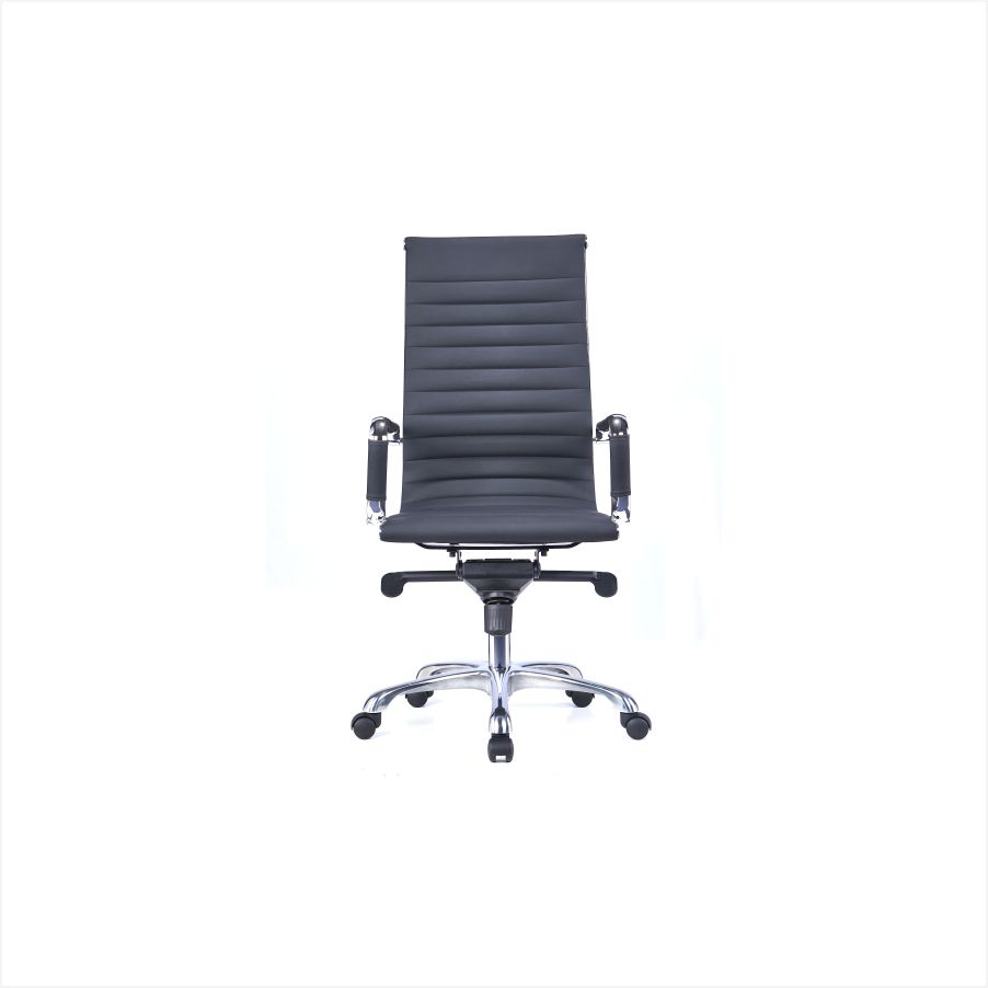 Eames High Back Leather Chair is a legendary executive seating furniture piece renown for its classy design. With its high backrest, all upholstered using a leather material, it expresses dominate point. Its originally an innovation from the husband-and-wife team Charles and Ray Eames, well complimented with a polished chrome star base. Its armrests fixed yet well padded with leather material. Under the seat, it uses a modern height adjustable mechanism for up and down advancements. Has mobility wheels attached to its shinny aluminum 5 star swivel base. Contact Desk Craft for custom fabric selection to match your office interior design and fit out.