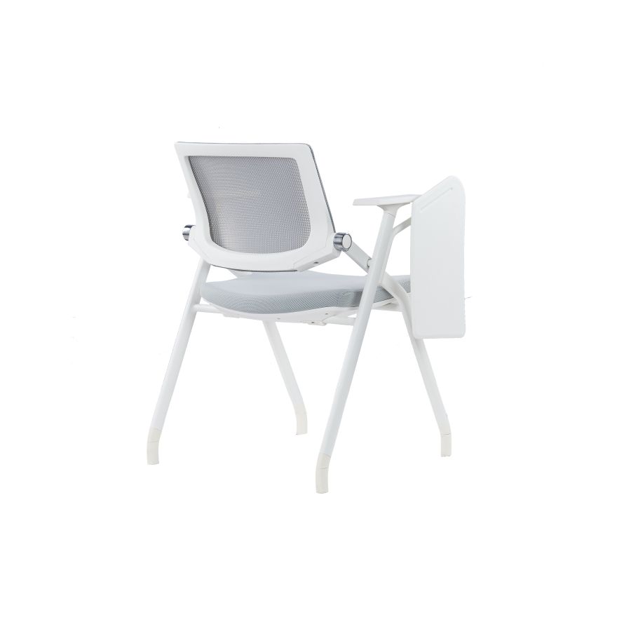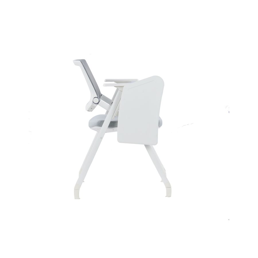 HAKKY White Foldable Training Chair is made of nylon fiberglass frame which firmly holds its breathable mesh backrest. Besides, it features a writing pad extension holding onto its right hand armrest. This makes it the most versatile conference room and classroom furniture solution offering a writing platform on the side. Its lightweight, durable and very easy to clean. HAKKY comes with a soft seat cushioned yet upholstered with a tough customizable fabric. At a moderately elevated height, it also made with a tiltable back and sliding armrest that allows for easy relocation and confined storage. Check out Desk Craft wide collection of stools and training chairs for modern conference rooms.