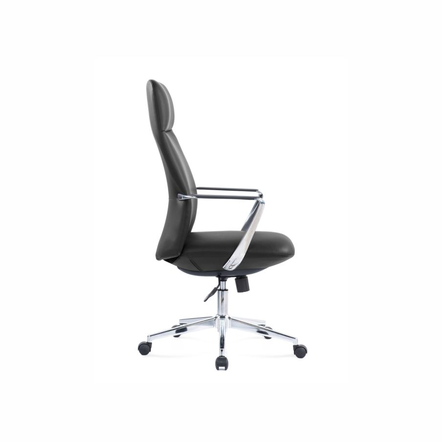 MARINA Full-Back Leather Office Chair is the epitome elegance and power when it comes to executive office seating. Made of high-quality PU black leather materials which significantly exudes power. The softly rounded edges along the corners of the backrest ,fixed armrests and seat cushioning making it a safe space to be. When it comes to comfort, MARINA Chair backrest and seat are fully padded with high quality molded foam. Its actually the best material for relaxed seating during longer sessions yet still maintaining the chairs shape afterwards. Although it has fixed shinny armrests, its also complimented with a 3600 swivel 5 star base. While it efficiently moves with all-round floor safe wheels at its base, it smoothly moves up and down to optimal usage.