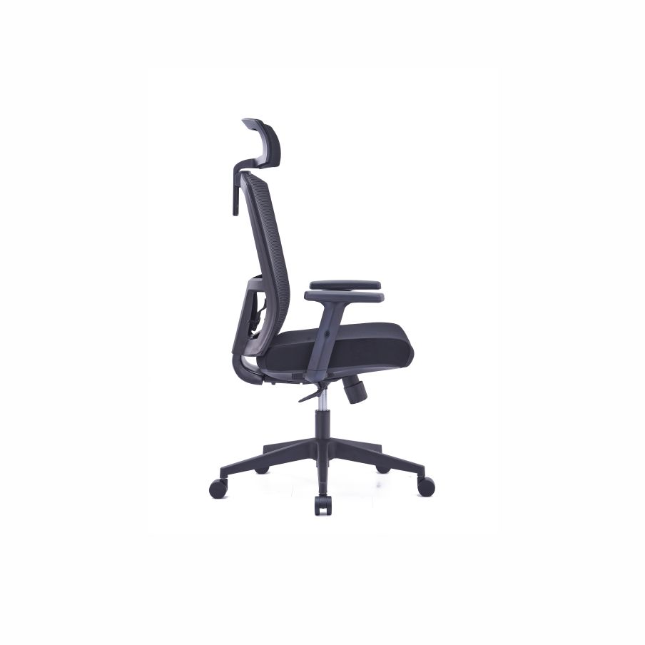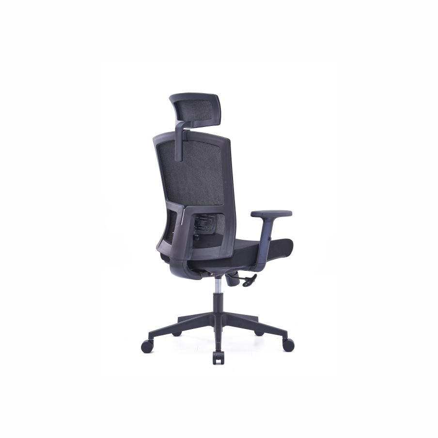 MAXON-A Black Mesh Ergonomic Chair is modern corporate comfort office seat with advanced adjustable features. Among them include the mesh backrest, up and down breathable headrest, seat together with armrests. backrest. It stands durably stronger than any other due to its reinforced nylon fiberglass flame which encloses its adjustable lumbar support. Making it fully in black color is a strategic way of MAXON chair projecting professionalism and power in a workspace. At the bottom, this engineered computer chair moves up and down with the help of a tested and approved Korean gas lift. This adds on its capability to swivel 3600 which essentially benefits multitasking computer users especially designers. The floor safe black nylon casters make it the most versatile solution when multitasking and working around L-shaped desks. For customization with intentions for blending it to any employee working area, contact Desk Craft for stylized fabric materials and colors.