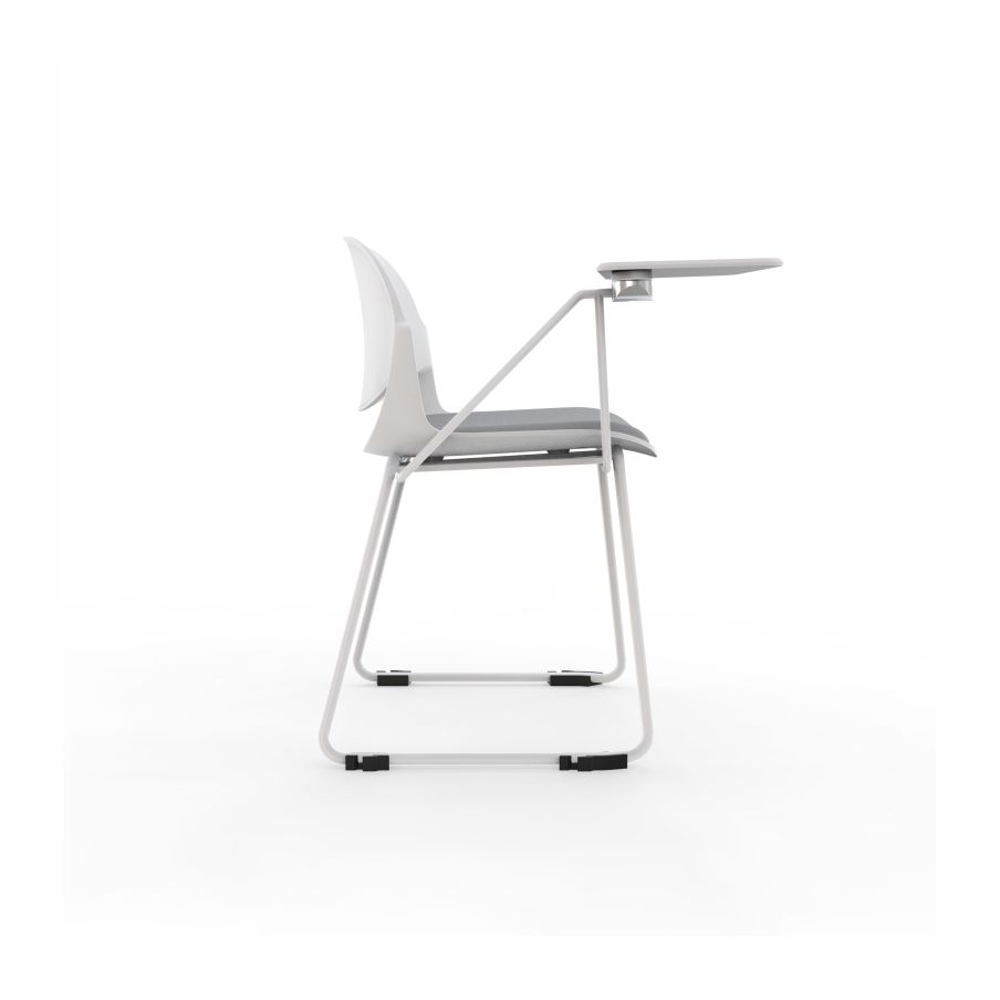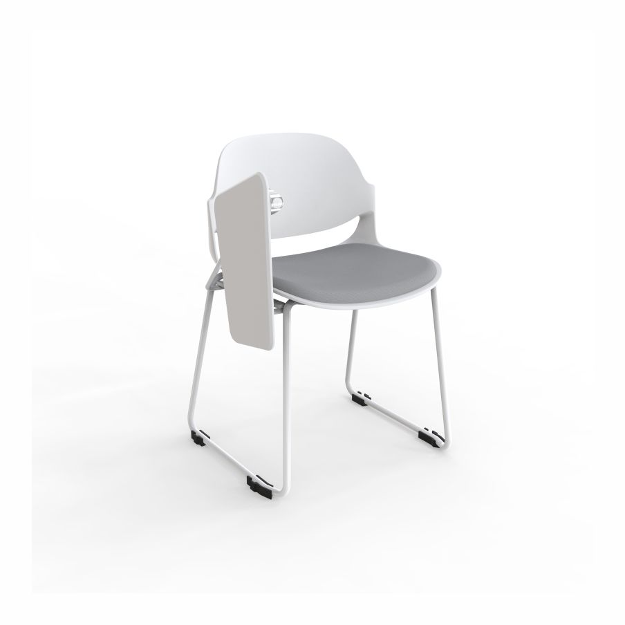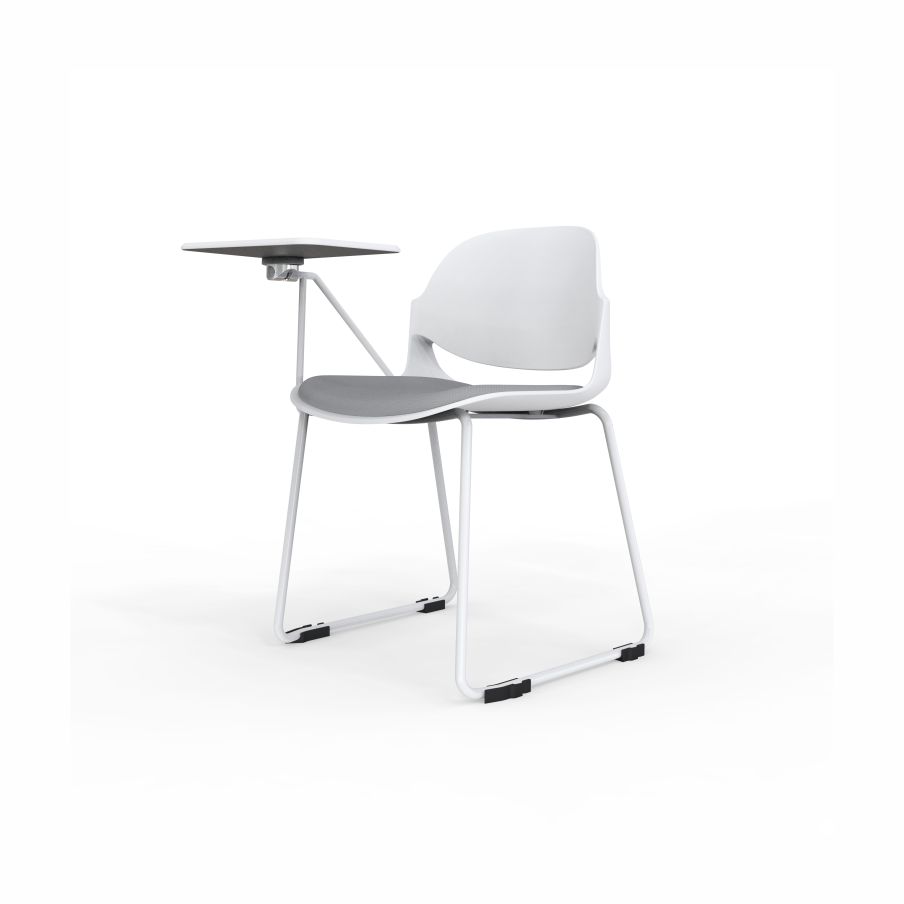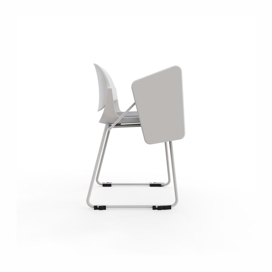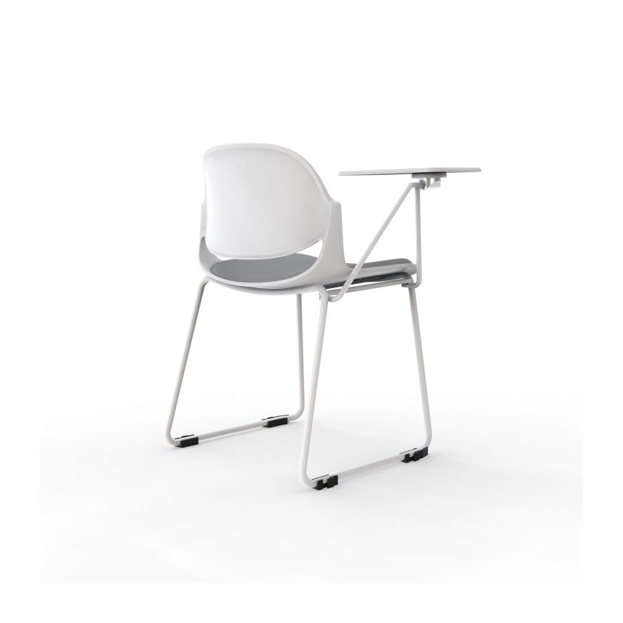 TURNER Training Chair made of a white frame and white coated steel frame together with a PA nylon writing pad. This is the most versatile conference room furniture solution offering a writing platform on the side. Its lightweight, durable and very easy to clean. Turner comes with a soft seat cushioned yet upholstered with a tough grey fabric. At a moderately elevated height, it stands on legs rods which also have rubber floor supports. Check out Desk Craft wide collection of stools and training chairs for modern conference rooms.