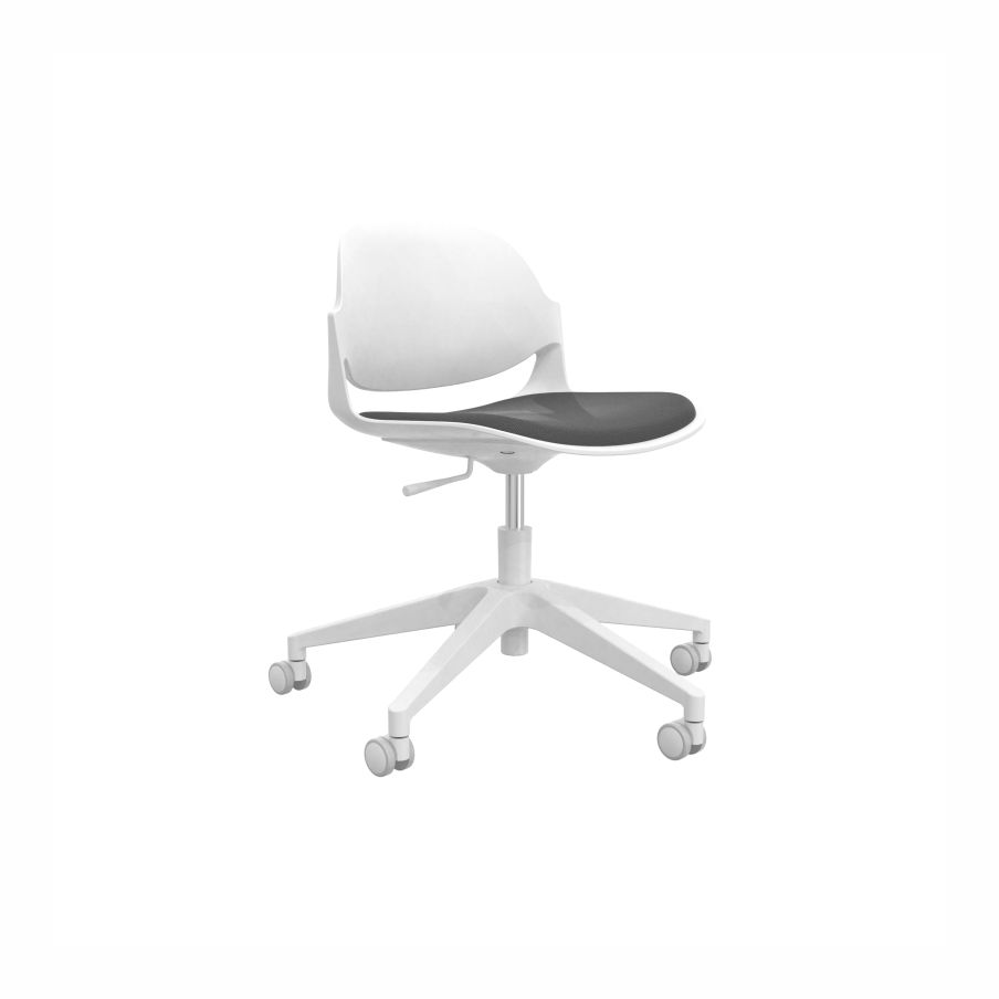 TURNER White Swivel Chair is a modern yet minimalistic stylish multifunctional chair. Its designed with white open backrest frame, adjustable seat upholstered with grey fabric together with a 3600 swivel base. As it features a 5 star aluminum base with wheels, its also works well as an office task chair while usable in lounge spaces. With this, everything becomes accessible within arms reach as it both rotates and adjusts up and down.