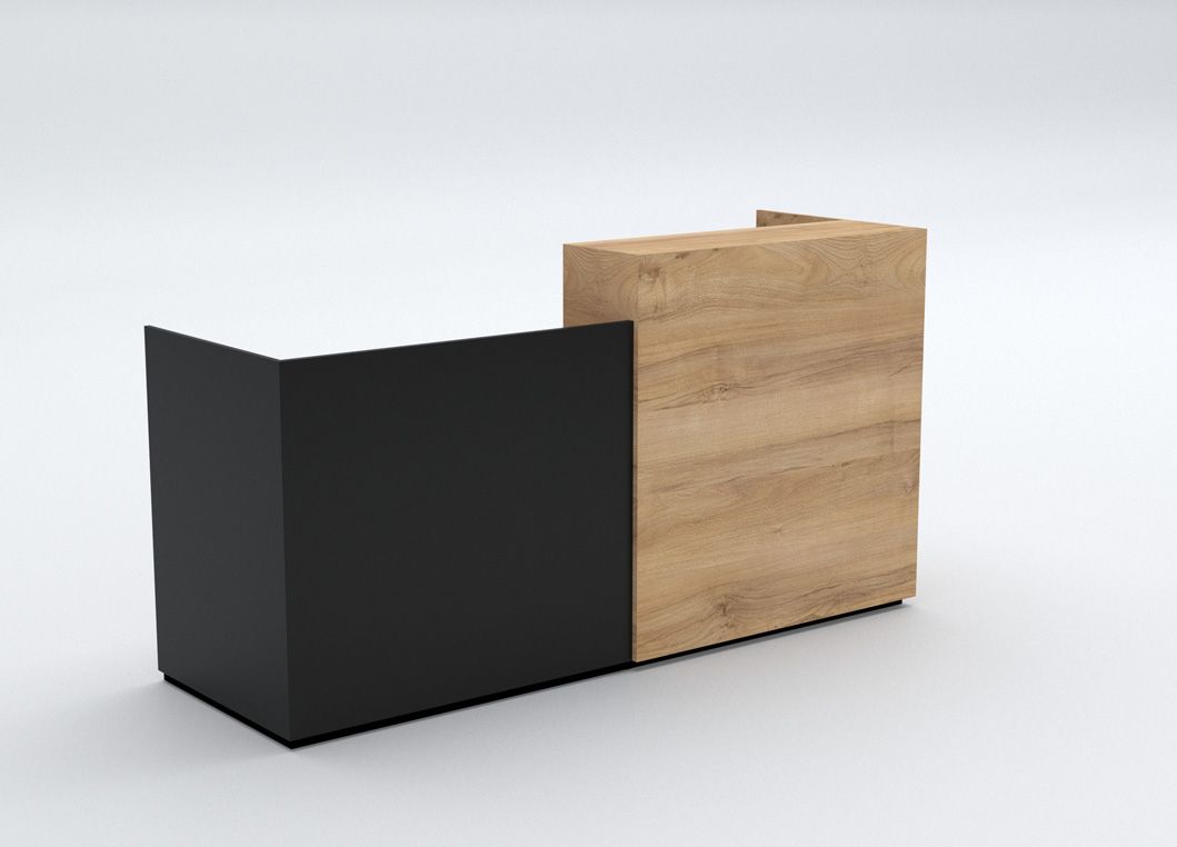 VICTOR Reception Desk is a true modern minimalistic front office furniture strategically crafted from MDF laminate boards. While spanning dimensions of 180L*70W*110H cm, it offers an ergonomic workspace for a receptionist. We make in two contrasting wood board textures while elevates its sleek bespoke rectangular design. It blocks the front office while inside it forming a lower platform for computers, document work, and gadgets. Underneath, it offers an optimal space which houses a mobile 3 drawer storage pedestal. Pull it, push it and set it in an arms reachable distance yet still lockable with a key. Round grommets on both ends of the desk corner, also play their part by offering cable pathways. Desk Craft offers a wide collection of custom front office counter design just like VICTOR. Contact us for custom changes in desks like dimensions, wood board textures, color and shaping.